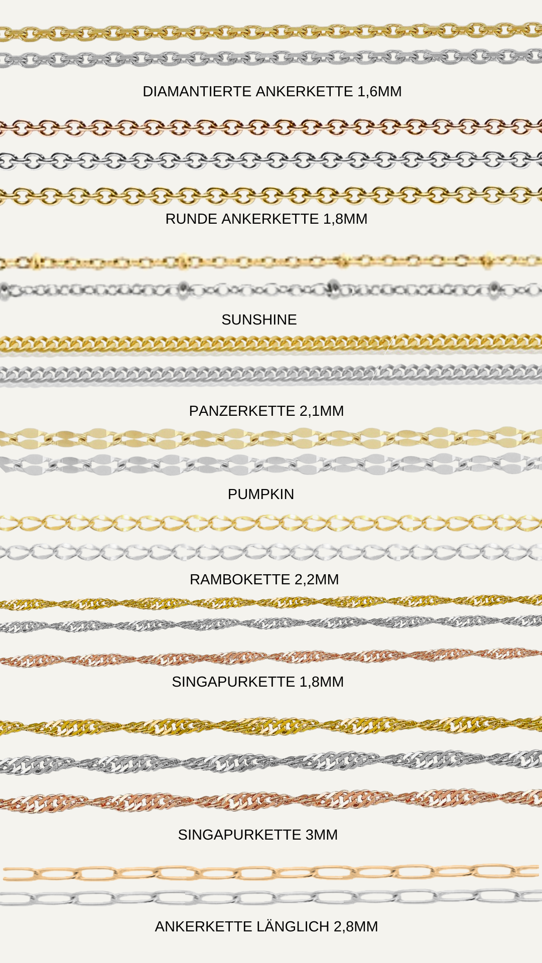 Farben: Gold, Silber, und 3 Varianten Rosegold